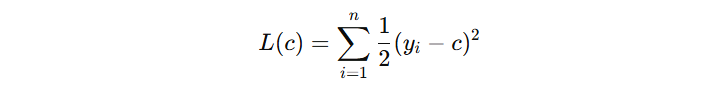 那么,这个初始模型的输出值 c 怎么确定?对于回归预测问题,我们一般使用的 squared error 损失函数,其公式如下: