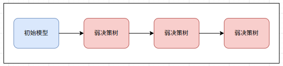 从表面来看,GBDT 是由一个初始模型和多个决策树构成的算法模型。整个模型可以被看作一个由多棵树叠加形成的加法系统: