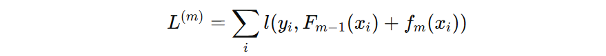 \( l(y_i, F_{m-1}(x_i)) \) 表示还没有加入新树时的损失,是常数项,可以去掉,我们就得到了一个关于 \( f_{m}(x_{i}) \) 的公式: