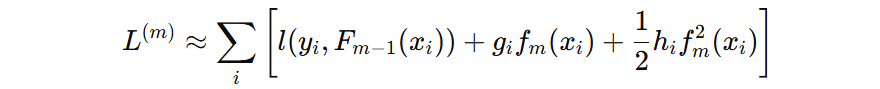 由于 \( l \) 可能是任意复杂的非线性函数,并且我们要优化的 \( f_{m}(x) \) 是整个损失函数内部的一部分,直接对 \( f_{m}(x) \) 优化不现实。所以,我们需要使用泰勒二阶展开这个工具将损失函数近似成一个关于 \( f_{m}(x) \) 的二次函数,这样就能继续优化 \(f_{m}\)。