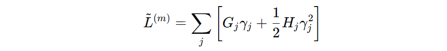 这个公式表示,新增第\(m\)棵树时,所有叶子节点所覆盖样本的损失下降幅度之和。我们希望每个叶子节点贡献的下降幅度尽可能显著,使得总体损失尽可能下降。