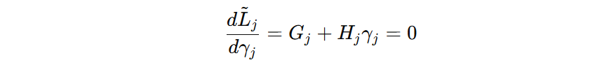 为了使得每个叶子节点都能尽肯能下降损失,我们需要知道叶子节点的输出 \( \gamma \) 的最优值,对 \( \gamma \) 求导,并令导数等于 0。