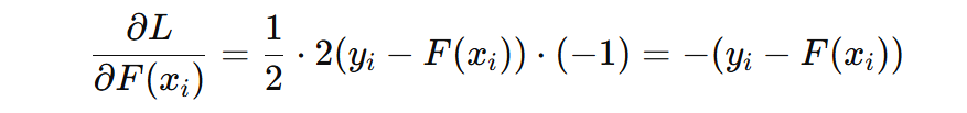 GBDT 分类模型默认使用二分类损失函数 log loss,其负梯度计算公式为: