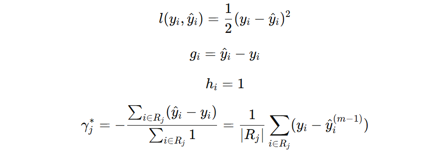 注意:公式中的 \( \gamma \) 表示当前正在构建的树的输出值(即:叶子节点的值)