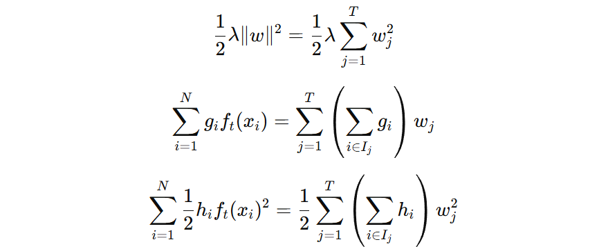 现在的公式,是从样本的角度来统计损失的下降幅度,需要将其转换为从叶子节点角度的损失表示: