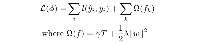 - 正则化项:用于控制树的复杂度(结构复杂度、输出复杂度)