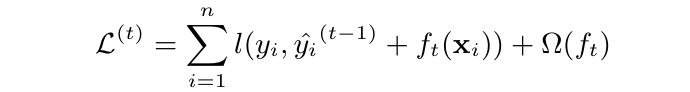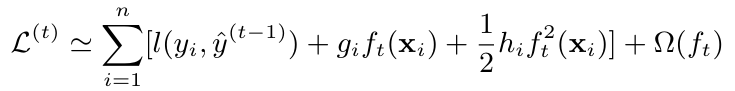 \( l(y_i, \hat{y}^{t-1}) \) 表示还没有加入新树时的损失,这一项表示的模型是已知的,是常数项,可以去掉,我们就得到了一个关于 \( f_{t}(x_{i}) \) 的公式: