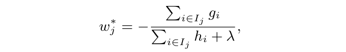 - 当构建好决策树后,每个叶子节点的输出值按照该公式确定