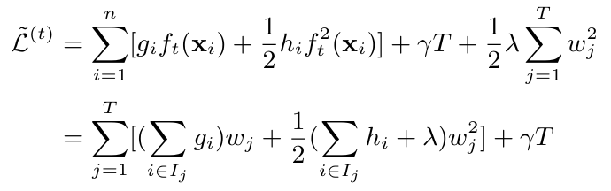 \( G_{i} \) 表示叶子结点上一阶导之和,\( H_{i} \) 表示叶子结点上的二阶导之和。